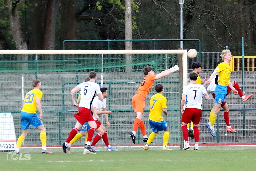 Was für ein Abend! In einem hitzigen, turbulenten und über weite Strecken hochklassigen Landesligaspiel setzte sich unsere Mannschaft am Freitagabend verdient mit 5:3 beim SSV Markranstädt durch. Die Tore für unsere Blau-Gelben erzielten Nico Brehm (2), Paul Lehmann, Damion Sura und Moritz Butzke. Mit diesem wichtigen Auswärtssieg bleiben unsere Männer weiter in der Spitzengruppe der Sachsenliga und halten den Druck auf die führenden Teams aufrecht. Von Beginn an war Feuer in der Partie. Beide Mannschaften waren sofort auf Betriebstemperatur, das Spiel nahm früh ein hohes Tempo auf. Während wir versuchten, über Ballbesitz und spielerische Lösungen Kontrolle zu gewinnen, setzte der Gastgeber vor allem auf Zweikampfhärte, Leidenschaft und Körperlichkeit. In der ersten halben Stunde begegneten sich beide Teams auf Augenhöhe, klare Vorteile konnte sich zunächst niemand erarbeiten. Die erste gute Möglichkeit gehörte unseren Männern: Nach Zuspiel von Florian Brügmann kam Nico Brehm in der 20. Minute aus der Drehung zum Abschluss, setzte den Ball aber über das Tor. Auf der anderen Seite wurde es ebenfalls gefährlich, als sich ein abgefälschter Schuss tückisch senkte und Jonas Jahnke zu einer starken Parade zwang. Die Partie war nun endgültig voll da. Kurz darauf vergab auch Cerno Abdulayi Kaba aus aussichtsreicher Position. In der 32. Minute fiel dann die verdiente Führung für unsere Farben: Paul Lehmann ließ einen Ball an der Strafraumgrenze clever für Nico Brehm klatschen, und unsere Nummer 10 jagte den Ball kompromisslos ins lange Eck. In der Folge hatten wir gleich mehrfach die Chance nachzulegen. Zunächst scheiterte Paul im Eins-gegen-eins am Schlussmann der Gastgeber, wenig später parierte dieser auch einen Kopfball von Jasper Raul Günther stark. Statt des möglichen 2:0 fiel dann jedoch der Ausgleich. Nach einem individuellen Fehler in unserer Defensive verloren wir einen bereits fast geklärten Ball noch leichtfertig und ermöglichten Markranstädt so das 1:1 (39.). Mit diesem Zwischenstand ging es auch in die Pause. Der zweite Durchgang begann dann mit einem echten Paukenschlag. Gerade einmal 20 Sekunden waren gespielt, da schickte Cerno Paul Lehmann auf die Reise, der vor dem Tor cool blieb und zum 2:1 einschob. Und es kam noch besser: Nur fünf Minuten später schlugen wir erneut zu. Nach einem Ballgewinn schalteten unsere Männer blitzschnell um, Nico Brehm war durch und machte mit seinem zweiten Treffer des Abends das 3:1 perfekt. In dieser Phase hatten wir das Spiel eigentlich im Griff, ließen Ball und Gegner laufen und wirkten dem vierten Treffer näher als der Gastgeber dem Anschluss. Doch genau dieser wollte zunächst nicht fallen. Eine große Möglichkeit ließ Cerno liegen, nachdem Joel sich stark im Strafraum durchgesetzt und mustergültig zurückgelegt hatte. Markranstädt gab sich jedoch nicht geschlagen und blieb gefährlich. Zunächst strich ein Ball nur knapp am langen Pfosten vorbei, ehe in der 66. Minute doch der Anschlusstreffer fiel. Jonas Jahnke konnte einen Flatterball nur nach vorne abwehren, ein nachsetzender Spieler staubte zum 2:3 ab. Plötzlich kippte das Momentum. Nur wenig später nutzte der Gastgeber einen schnell ausgeführten Freistoß, kam erneut gefährlich in unseren Strafraum und traf zum 3:3 in den Winkel. Eine Viertelstunde vor Schluss war damit wieder alles offen. Doch dann wendete sich das Blatt erneut zu unseren Gunsten. In der 78. Minute sah der Kapitän der Gastgeber innerhalb kürzester Zeit zweimal Gelb und musste vorzeitig vom Platz. In Überzahl drückten unsere Männer sofort wieder nach vorn – mit Erfolg: Eine Flanke von Nico Brehm verlängerte Paul Lehmann stark in den Lauf von Damion Sura, der aus kurzer Distanz zur erneuten Führung einschob (83.). Die Schlussphase war dann nichts für schwache Nerven. Markranstädt warf noch einmal alles nach vorne, wir hatten gleichzeitig mehrfach die Chance, den Sack endgültig zuzumachen. Julian Mehlow verfehlte nach einer missglückten Abwehr des gegnerischen Keepers aus rund 38 Metern nur knapp. In der Nachspielzeit sah ein weiterer Spieler der Gastgeber nach einem Foul als letzter Mann die Rote Karte. Den Schlusspunkt setzten dann doch noch unsere Farben: Mit der letzten Aktion des Spiels war Moritz Butzke frei durch und hatte keine Mühe, zum 5:3-Endstand zu vollenden. Am Ende steht ein verdienter Sieg in einem denkwürdigen Derby. Acht Tore, neun Gelbe Karten, eine Gelb-Rote und eine Rote Karte sprechen für eine Partie, in der Emotion, Intensität und Leidenschaft von der ersten bis zur letzten Minute spürbar waren. Gegen aufopferungsvoll kämpfende Gastgeber konnten wir unsere spielerische Überlegenheit nicht immer konsequent auf den Platz bringen und machten es uns zwischenzeitlich selbst schwer. Umso wichtiger war die Reaktion der Mannschaft, die in schwierigen Momenten Charakter, Moral und Leidenschaft bewies. Weiter geht’s mit dem nächsten Highlight: Am 25. Spieltag gastiert die BSG Stahl Riesa auf der Krieke. Anstoß ist am Samstag um 15:00 Uhr.