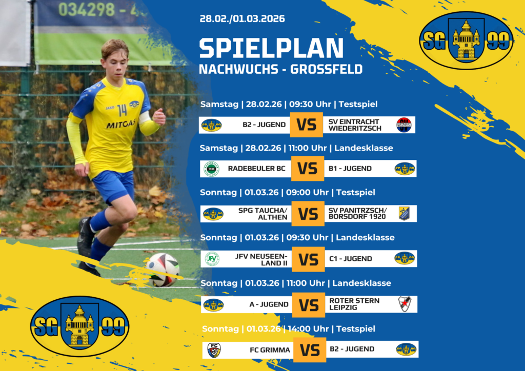 Wir drücken allen Teams die Daumen für einen gelungenen Einstieg in die Rückrunde. Entscheidend sind jetzt nicht nur Ergebnisse, sondern vor allem Einsatz, Teamgeist und der Spaß am Fußball. Kommt gut rein, bleibt gesund und zeigt auf dem Platz, wofür ihr als SG Taucha 99 steht!