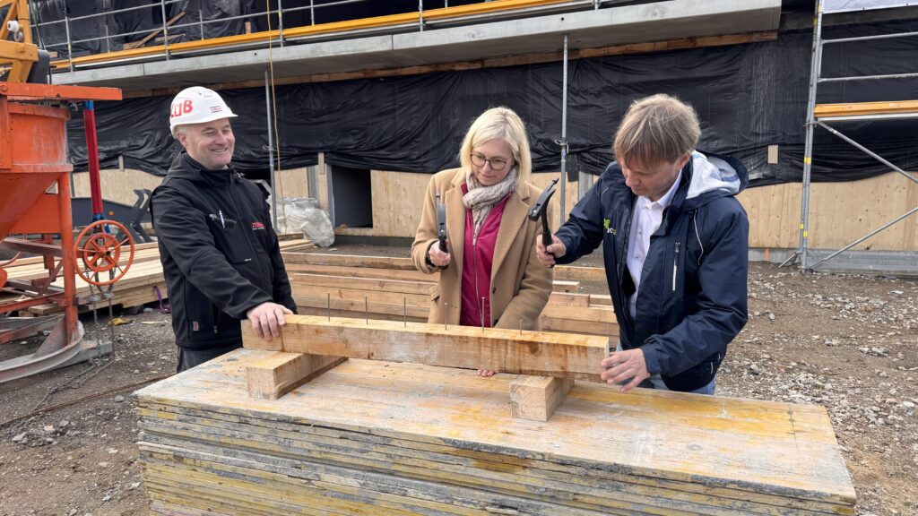 Darauf haben wir lange gewartet! Wer in den vergangenen Wochen an der Kriekauer Straße vorbeigefahren ist, hat sicher schon den einen oder anderen neugierigen Blick über den Zaun geworfen. Auch der weithin sichtbare Kran machte deutlich, dass auf unserer Krieke etwas Großes entsteht. Beim gestrigen Richtfest ließ es sich Frau Dr. Christiane Schenderlein, Staatsministerin für Sport und Ehrenamt im Bundeskanzleramt sowie Bundestagsabgeordnete für Nordsachsen, nicht nehmen, gemeinsam mit unserem Geschäftsführer Gunnar Simon im Beisein unseres Bürgermeisters Tobias Meier und zahlreicher Gäste den berühmten Nagel persönlich einzuschlagen.